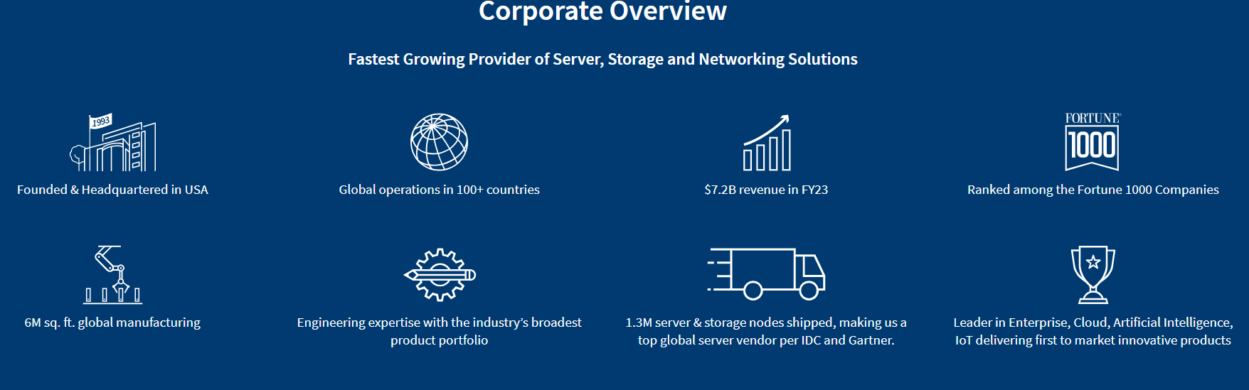 Story: American information technology. company based in San Jose, California. The company is one of the largest producers of high-performance and high-efficiency servers, while also providing server management software, and storage systems for various markets, including enterprise data centers, cloud computing, artificial intelligence,5G, and edge computing.